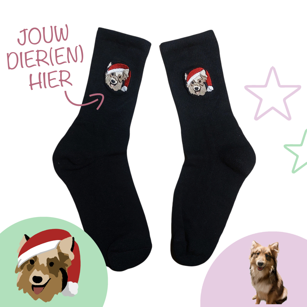 Je kan er voor kiezen om het hoofd van je dier of je volledige dier te laten borduren op sokken: