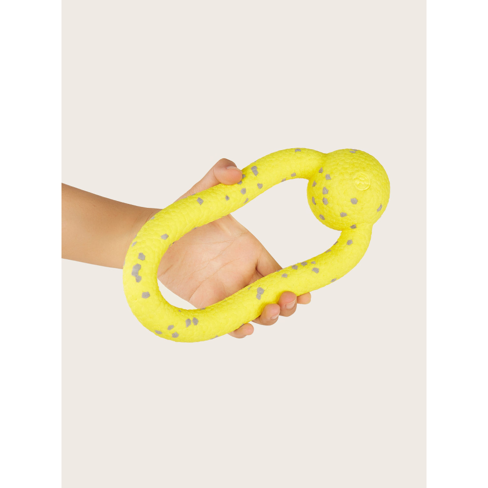 Het thermoplastisch rubber is vriendelijk voor de tanden en door de felle kleuren valt dit speeltje goed op.