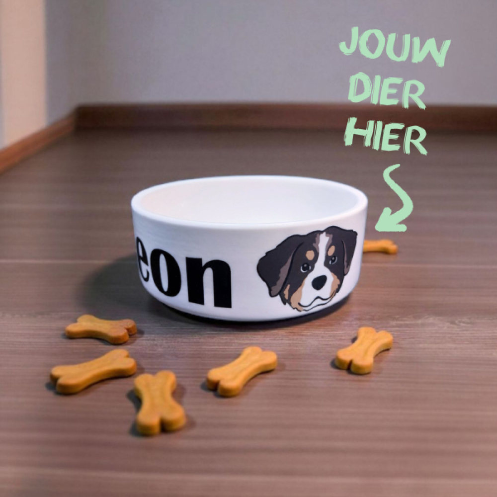 Een etensbak/drinkenbak met je eigen dier op, is dat niet geweldig?