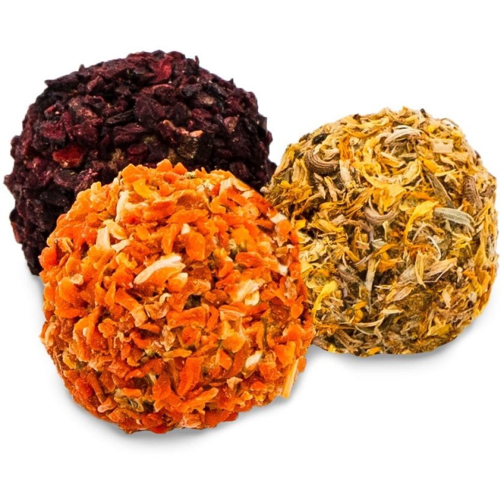 Drie verschillende kleurrijke gourmetballen brengen plezier en vreugde bij elk dier.