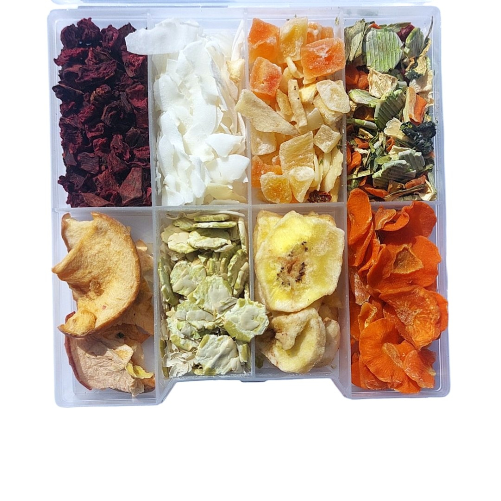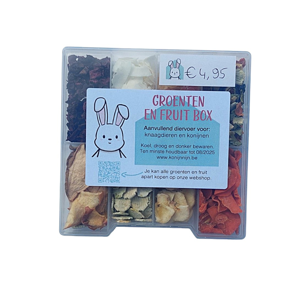 Deze box is gevuld met heerlijke groenten en fruit voor konijnen en knaagdieren.
