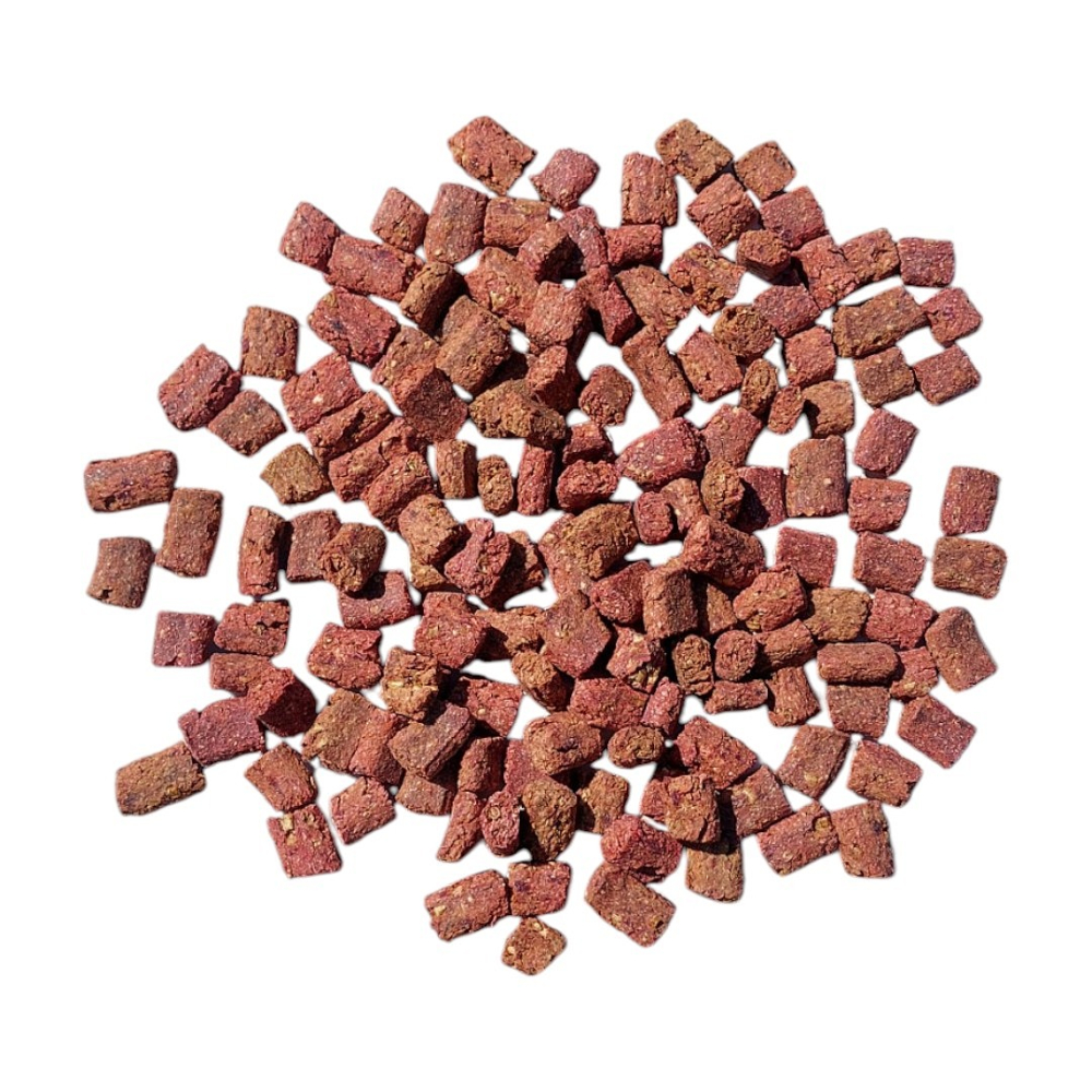 Samenstelling: Aardappel, meelwormen (25%), zoete aardappel, rode biet, hermetialarven (5%), wortelen, knolselderij, pompoen