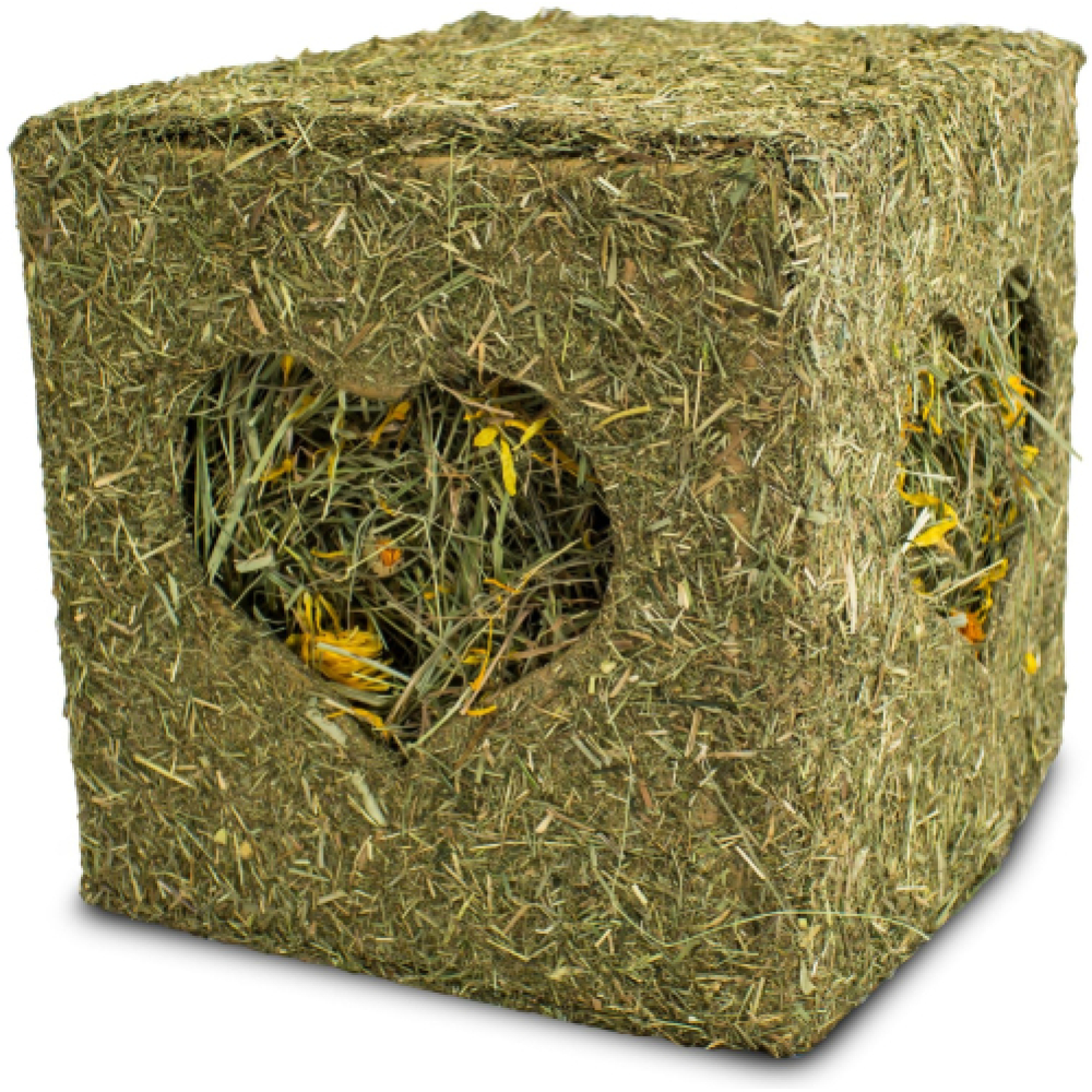 De natuurlijke hooi-box gevuld met aromatisch weidehooi en lekker geurende bloemen voor het extra aan belangrijke ruwe vezels.
