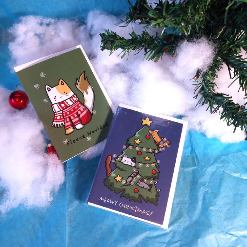 Kerstkaarten katten 10 stuks