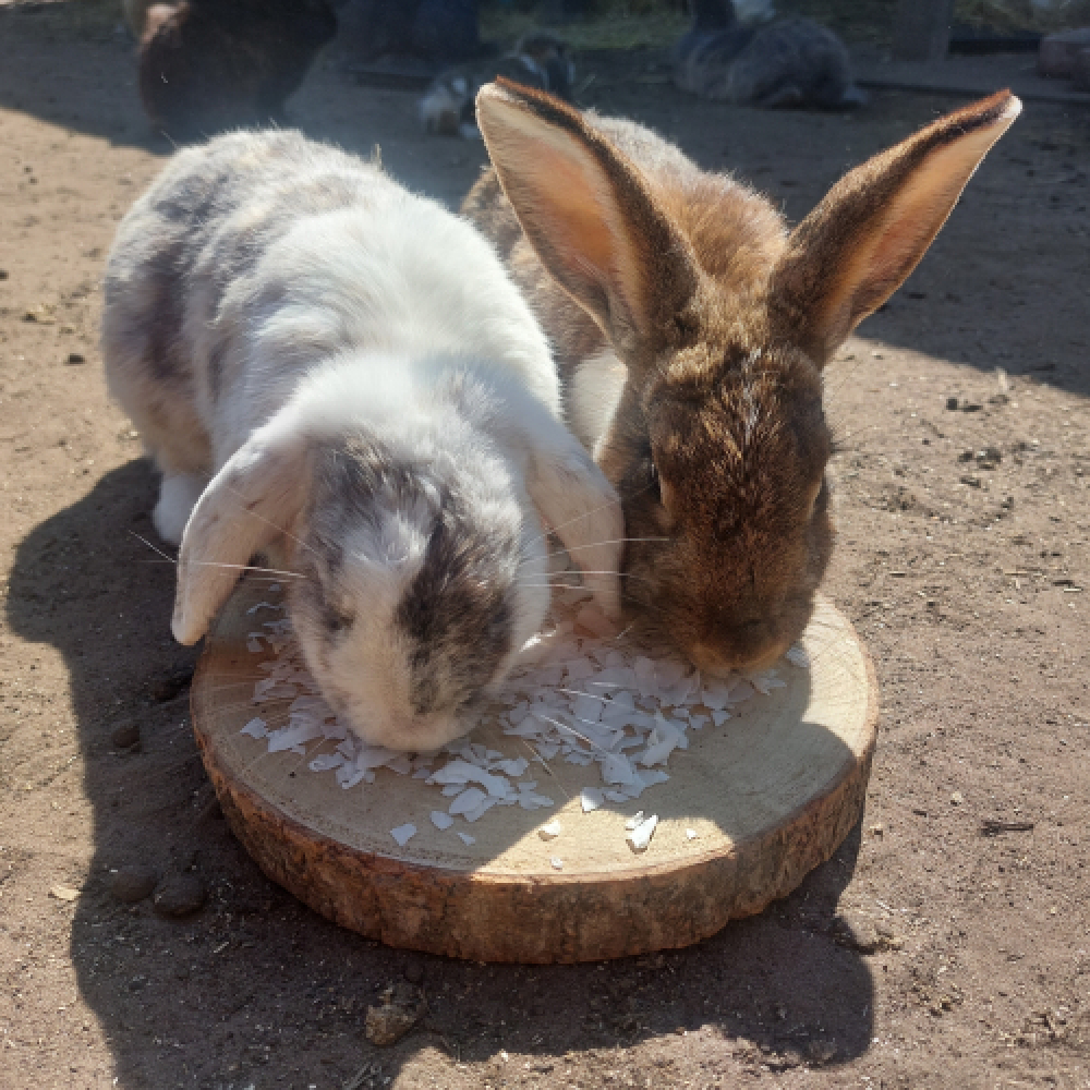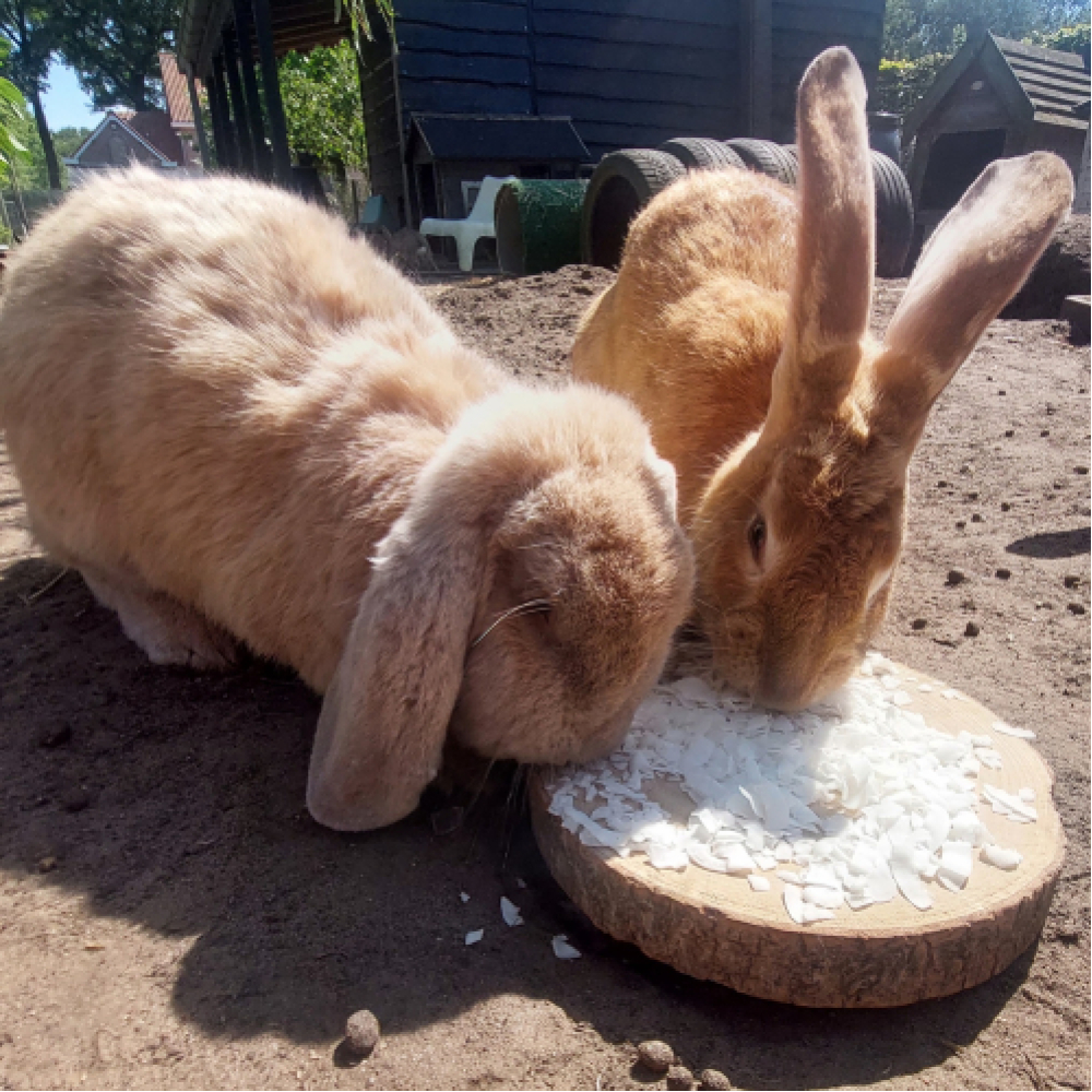 Je kan kokos ook door het hooi mengen om het hooi aantrekkelijker te maken om zo je konijn meer hooi te doen laten eten.