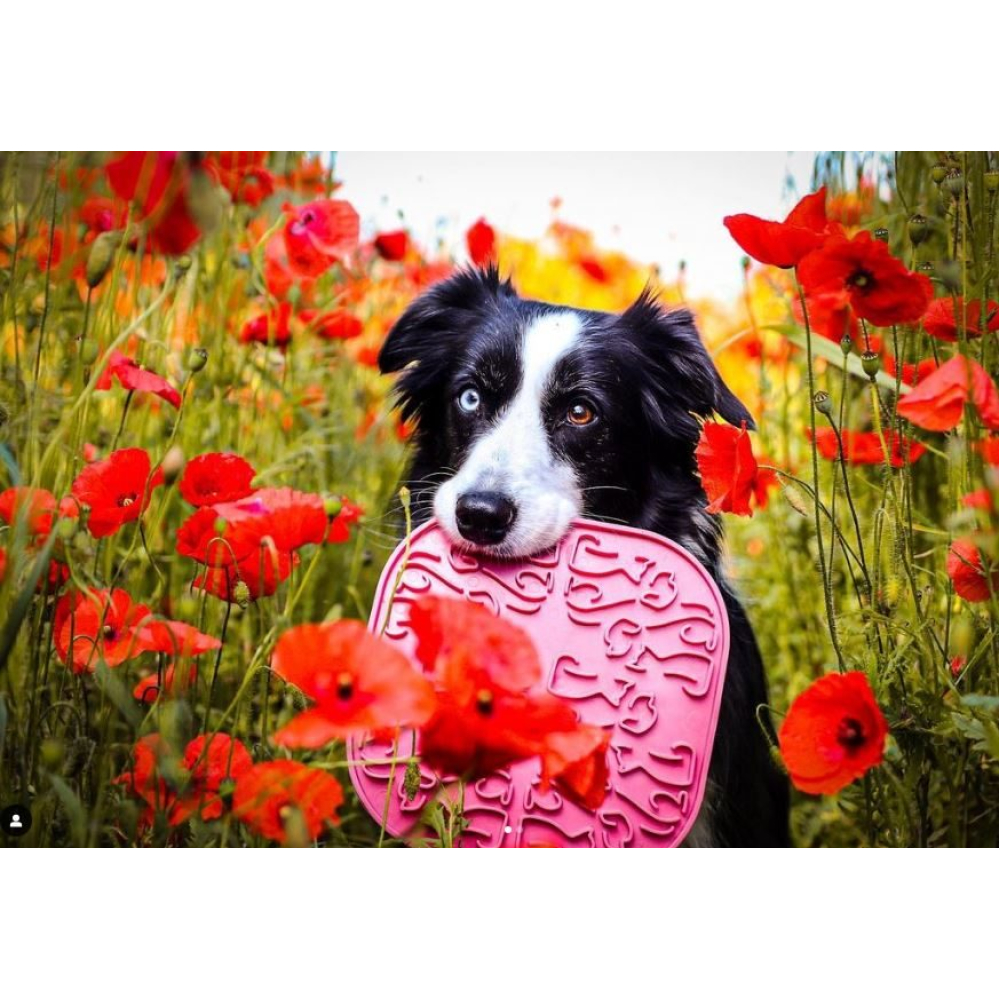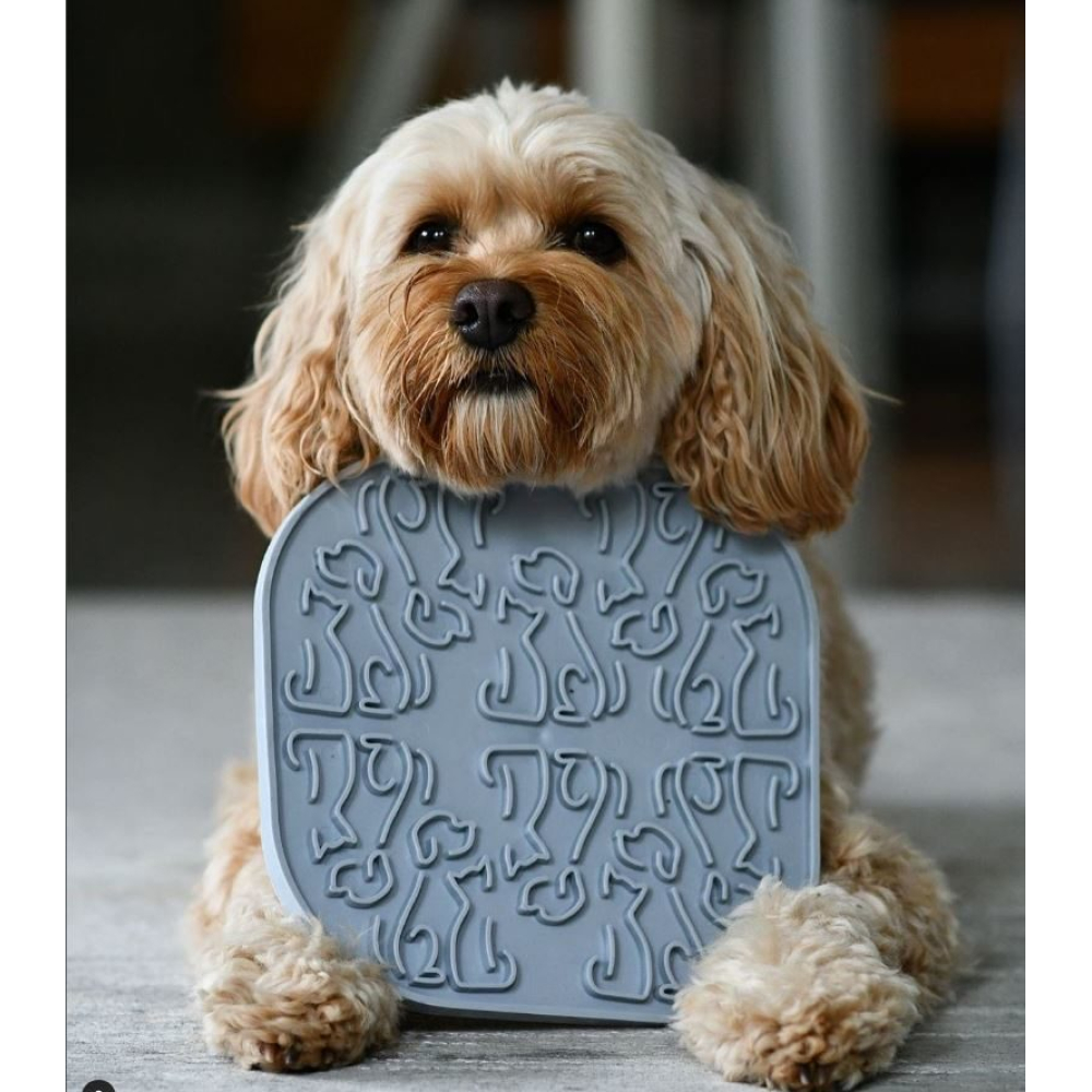 Een voedsel vertragende likmat. Gemaakt van zacht materiaal dat een goede grip op de ondergrond heeft, waardoor de mat niet wegglijdt.