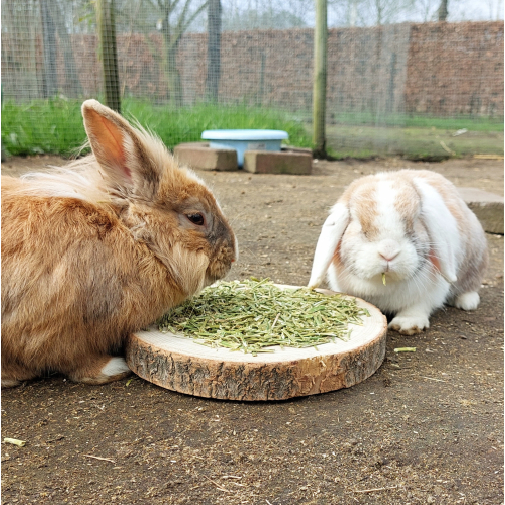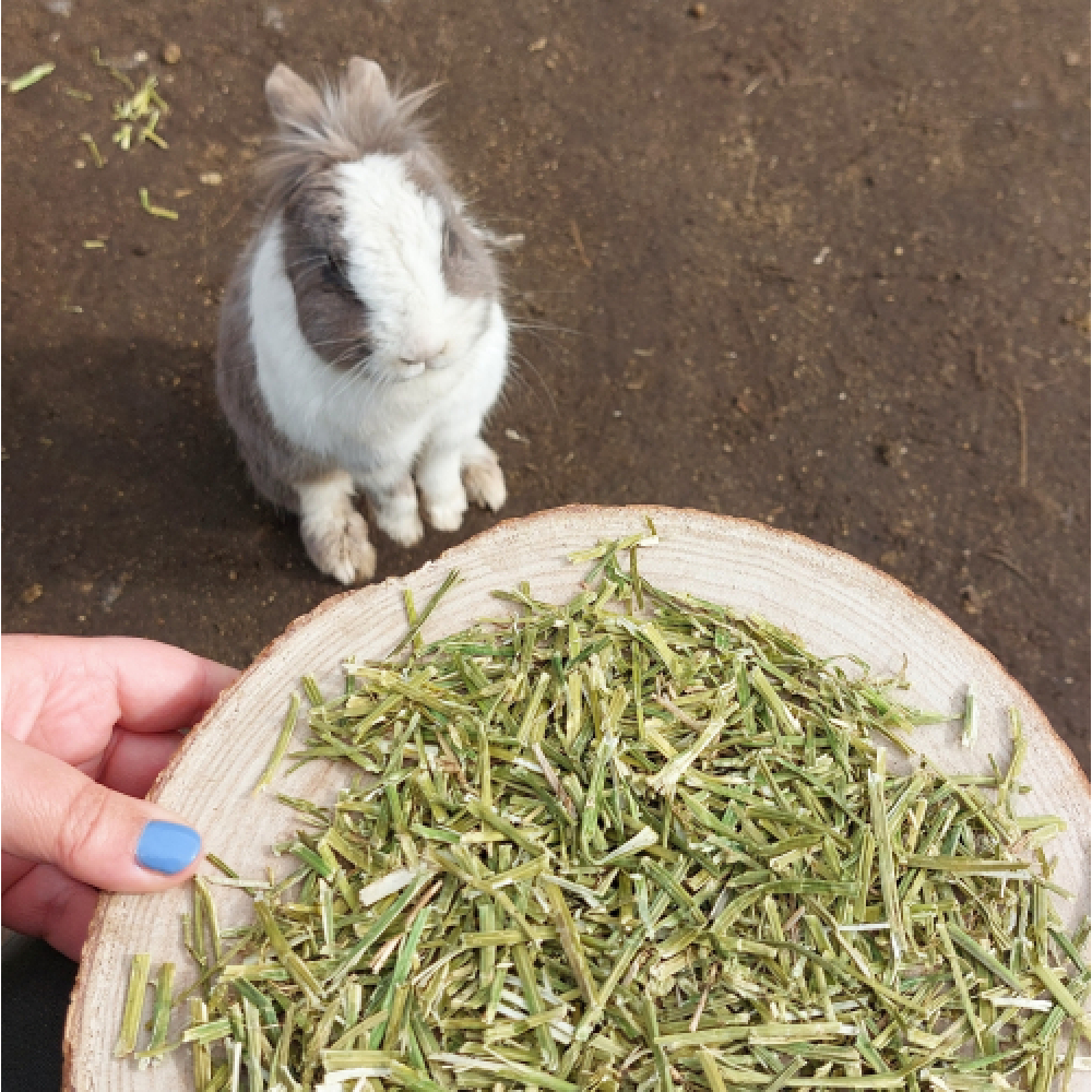 Je kan de luzerne door het hooi mengen om het hooi aantrekkelijker te maken om zo je konijn meer hooi te doen laten eten.