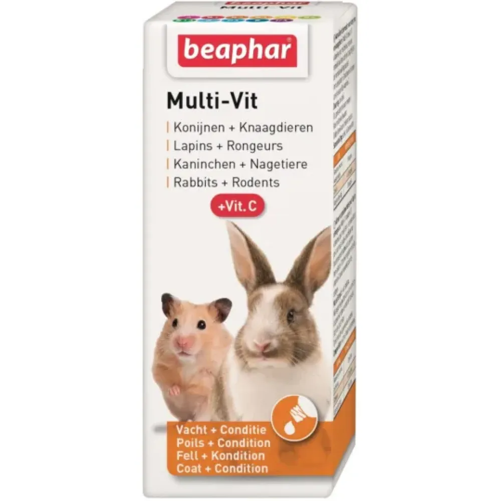 - Beaphar Multi-Vit ondersteunt gezondheid konijnen en knaagdieren.