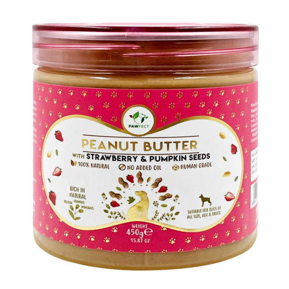 Deze speciaal voor honden ontwikkelde pindakaas is gemaakt van vers geroosterde pinda’s, aardbei en pompoenpitten zonder toegevoegd zout, suiker of olie. Aardbeien en pompoenpitten zitten boordevol antioxidanten, welke zorgen voor boost van het immuunsysteem. Daarnaast hebben deze ingrediënten een positieve invloed op een gezonde spijsvertering.