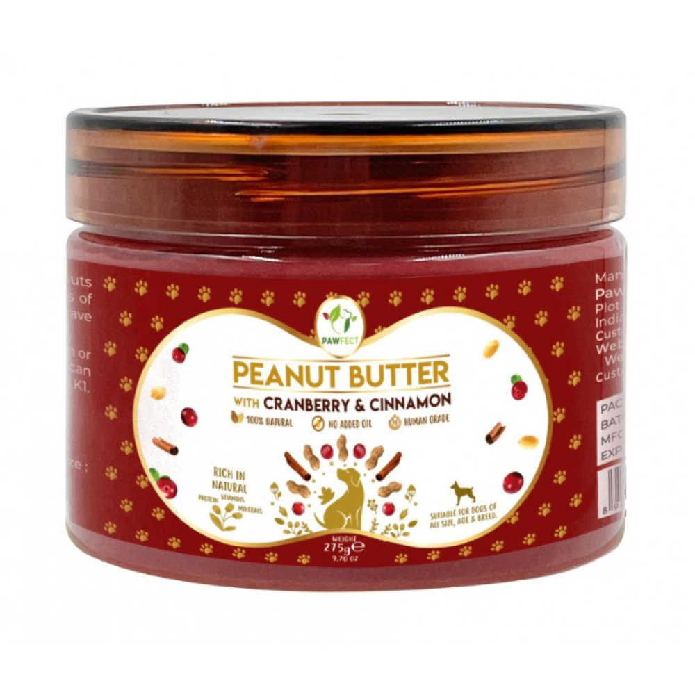 Deze speciaal voor honden ontwikkelde pindakaas is gemaakt van vers geroosterde pinda's, cranberry en kaneel zonder toegevoegd zout, suiker of olie. De toevoeging van kaneel kan ondersteunen bij spijsverteringsproblemen. Cranberry wordt vaak gebruikt bij honden met nier- en blaasproblemen, de toevoeging hiervan is daarom ook zeer waardevol.
