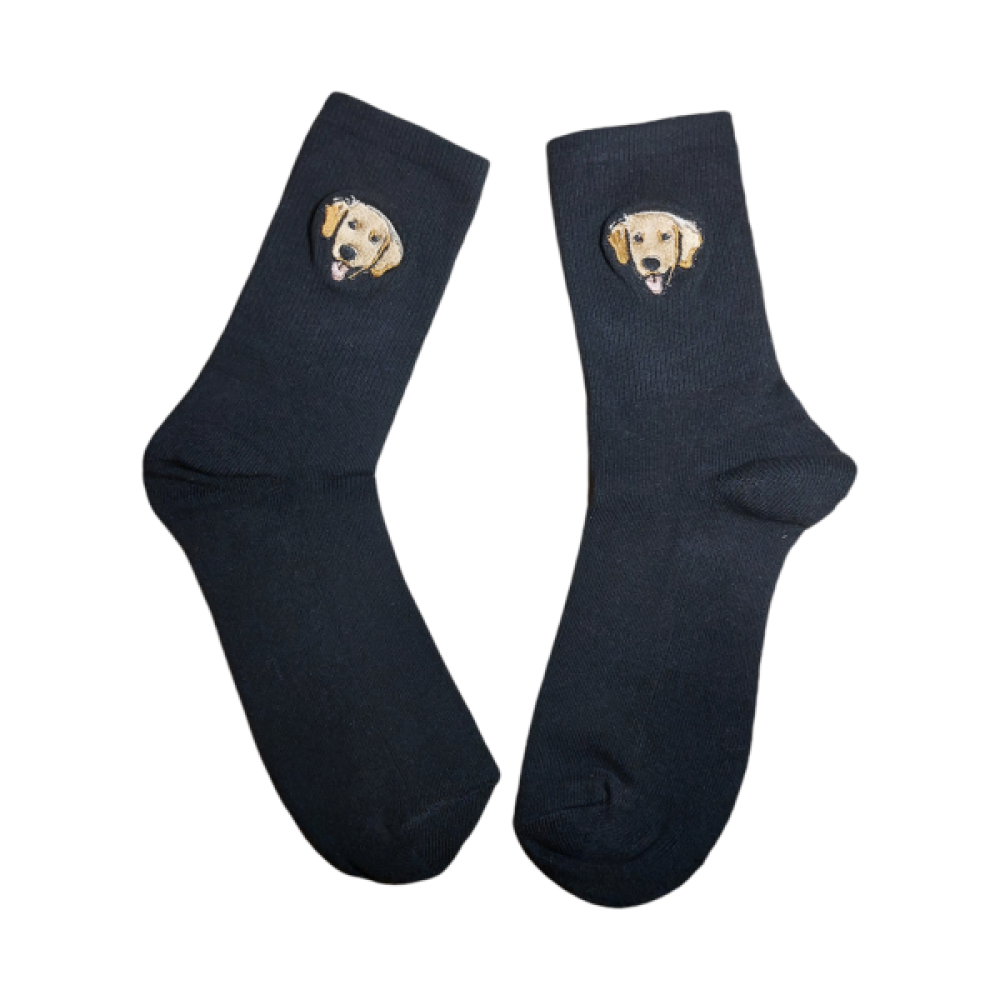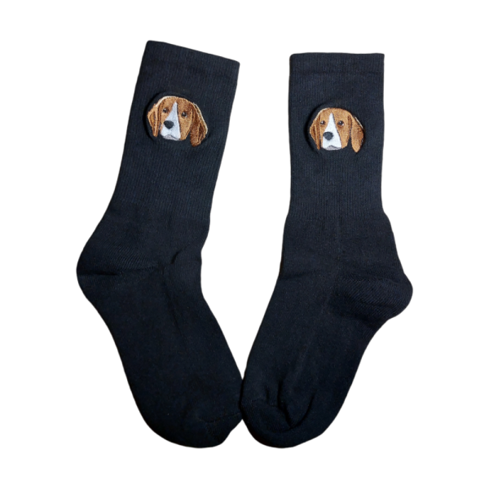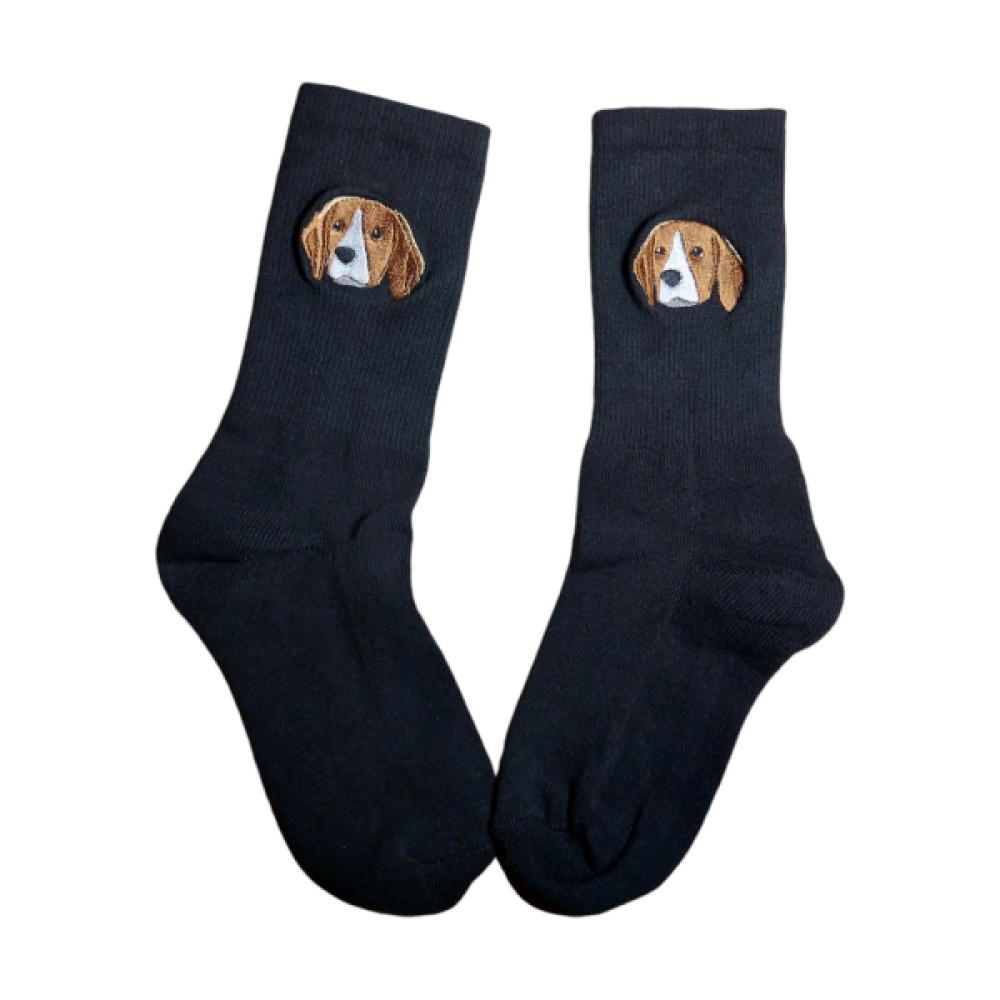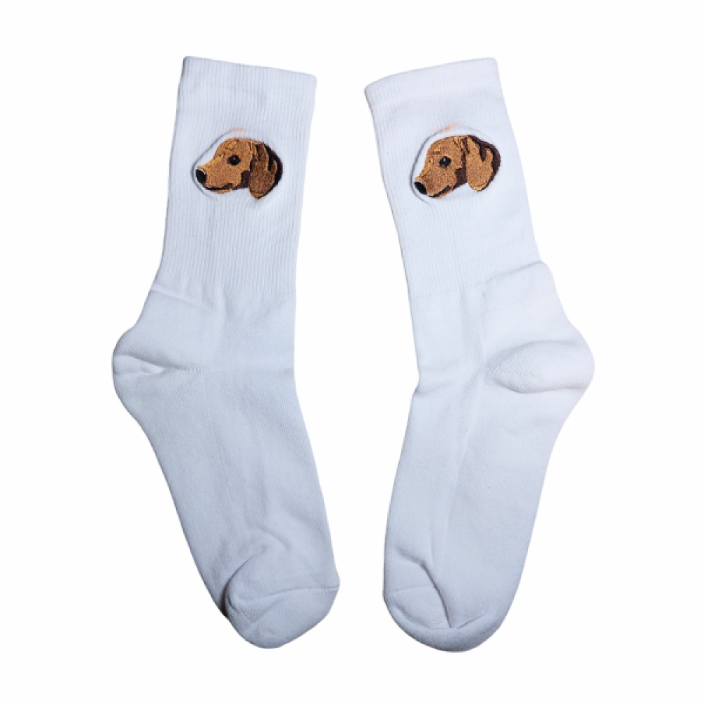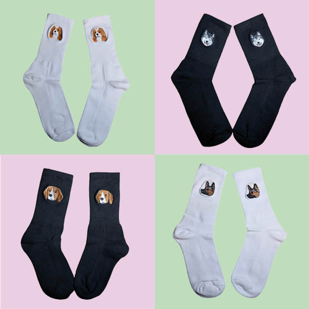 Op deze sokken borduren we één van de populaire dierenrassen.