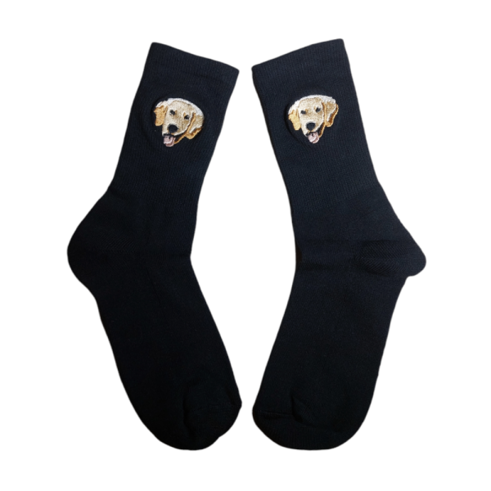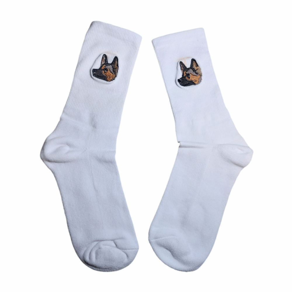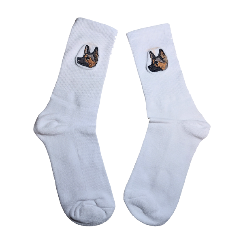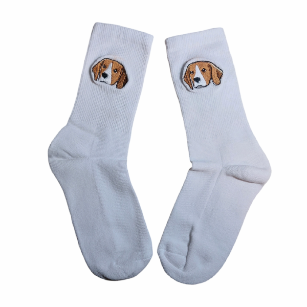 Op deze sokken borduren we één van de populaire dierenrassen.