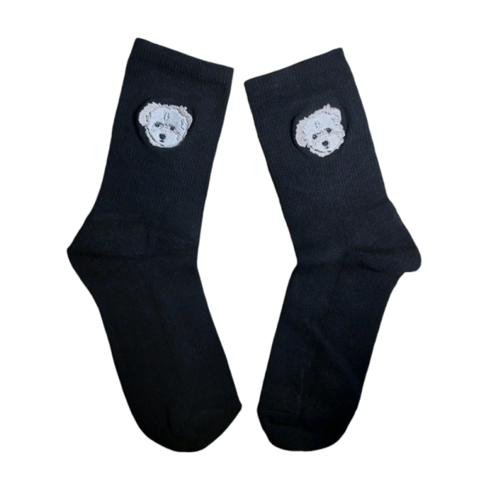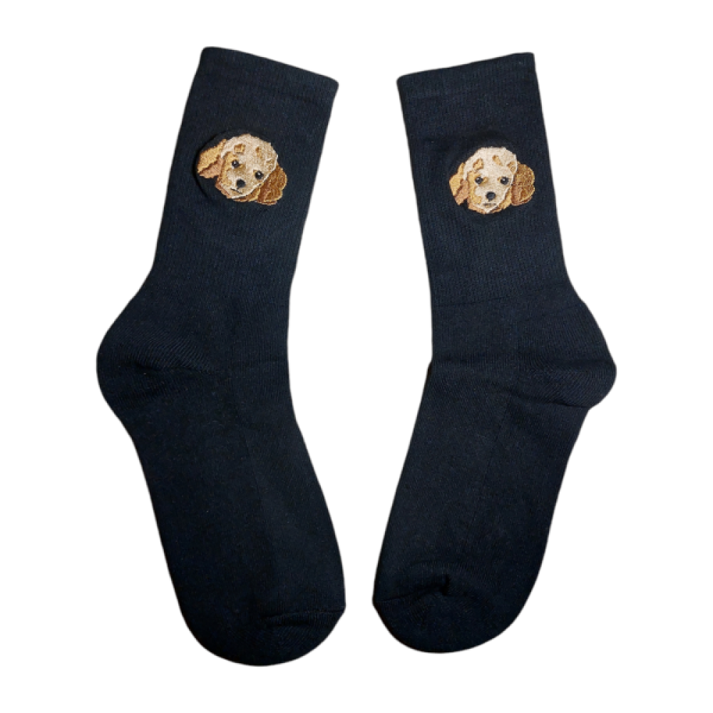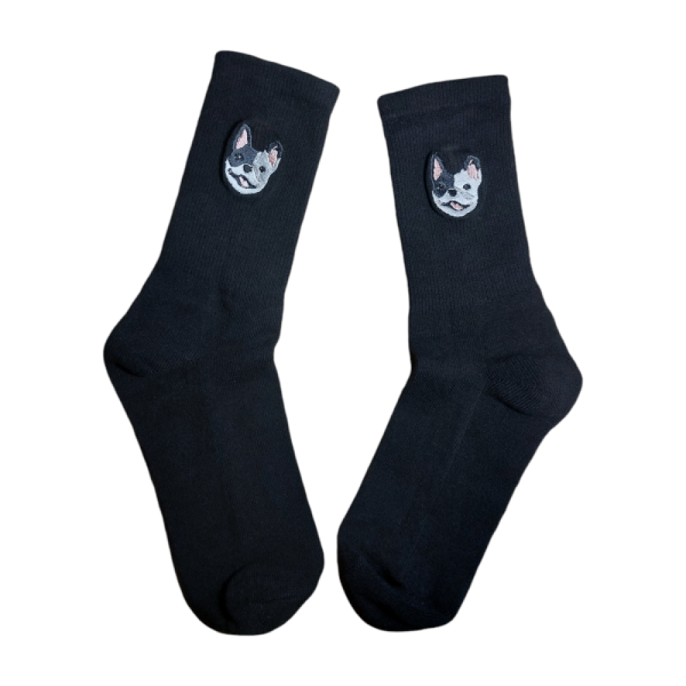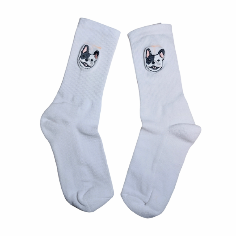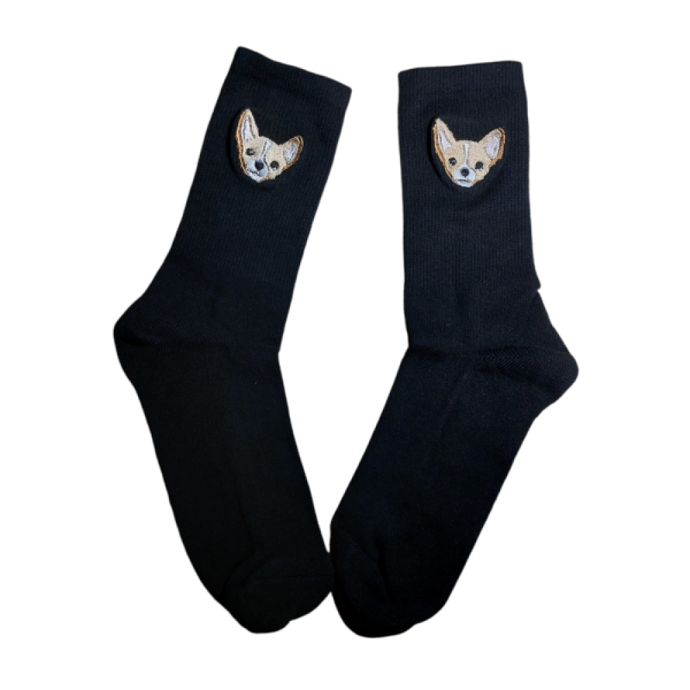Op deze sokken borduren we één van de populaire dierenrassen.