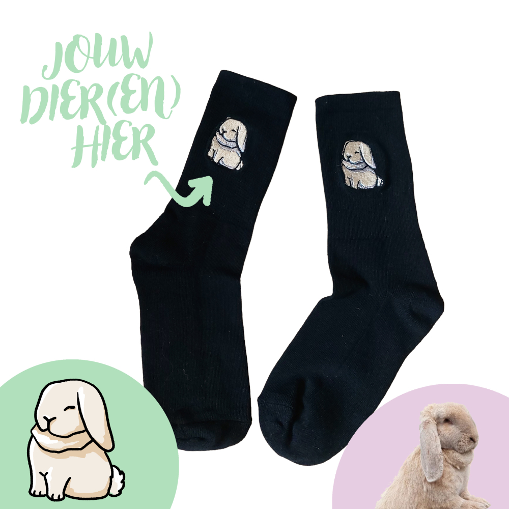 Je kan er voor kiezen om het hoofd van je dier of je volledige dier te laten borduren op sokken: