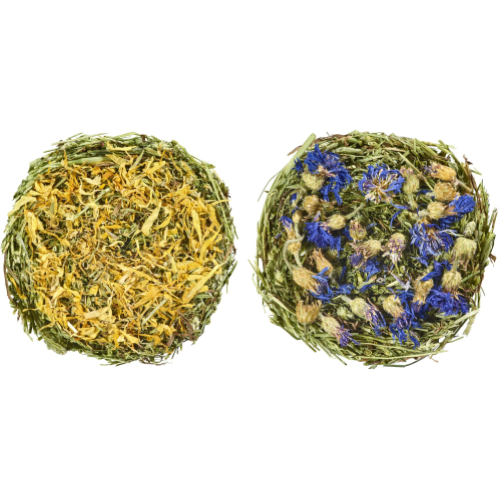 Samenstelling: Zongedroogd timothy hooi, goudsbloem (4%), korenbloem (4%), raphia en zetmeel