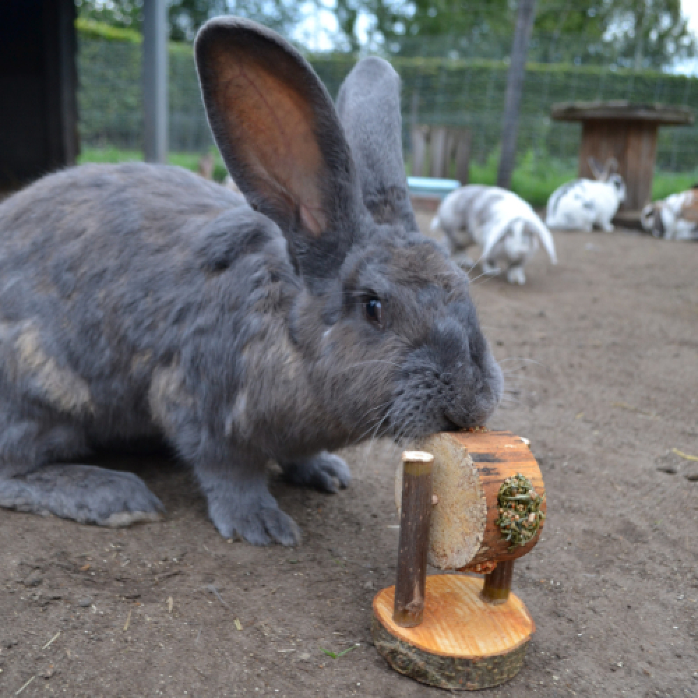 Het speelwiel zelf is gemaakt van 100% natuurlijk en onbehandeld hout waardoor het gehele wiel veilig is om aan te knagen en op te eten!