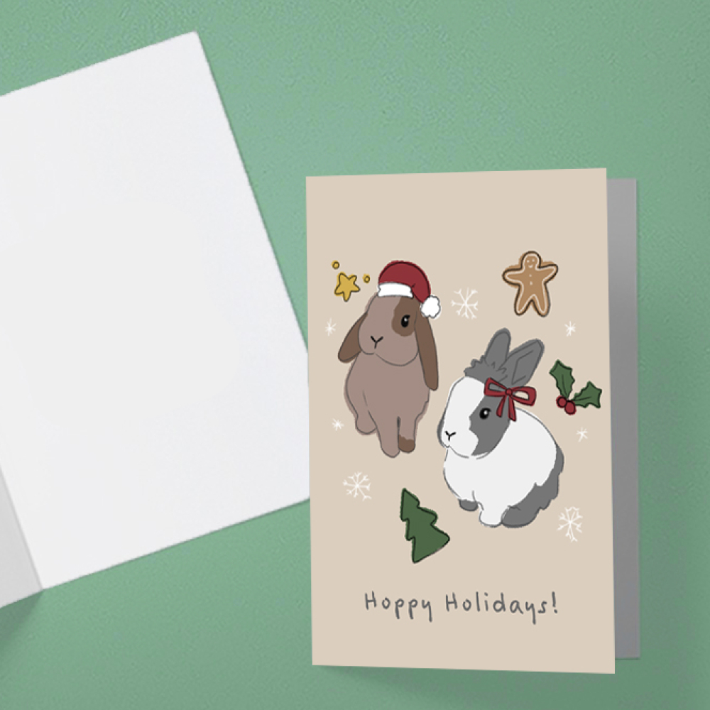 Wenskaart konijnen kerst
