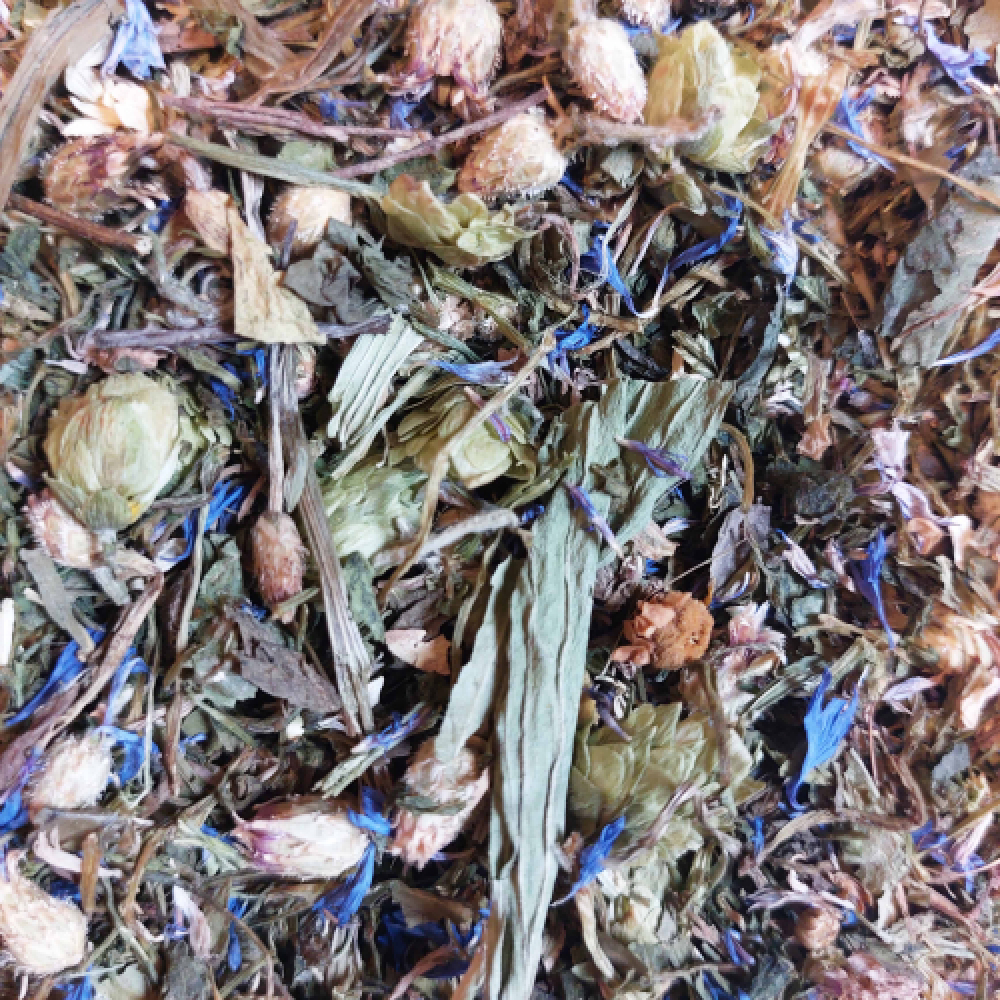 Peterseliestelen, korenbloem, weegbree, paardebloem, brandnetel, kamille, hop
