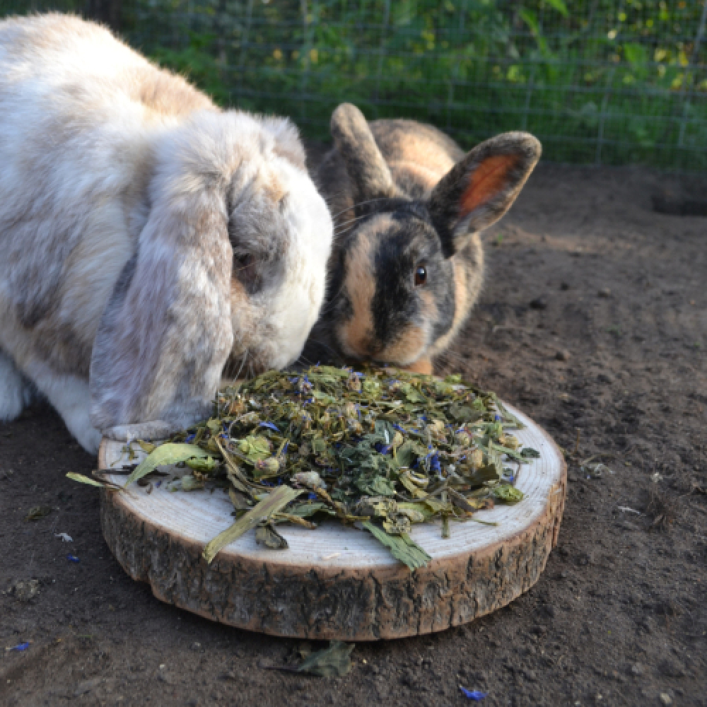 Je kan Winter Fit ook door het hooi mengen om het hooi aantrekkelijker te maken om zo je konijn meer hooi te doen laten eten.