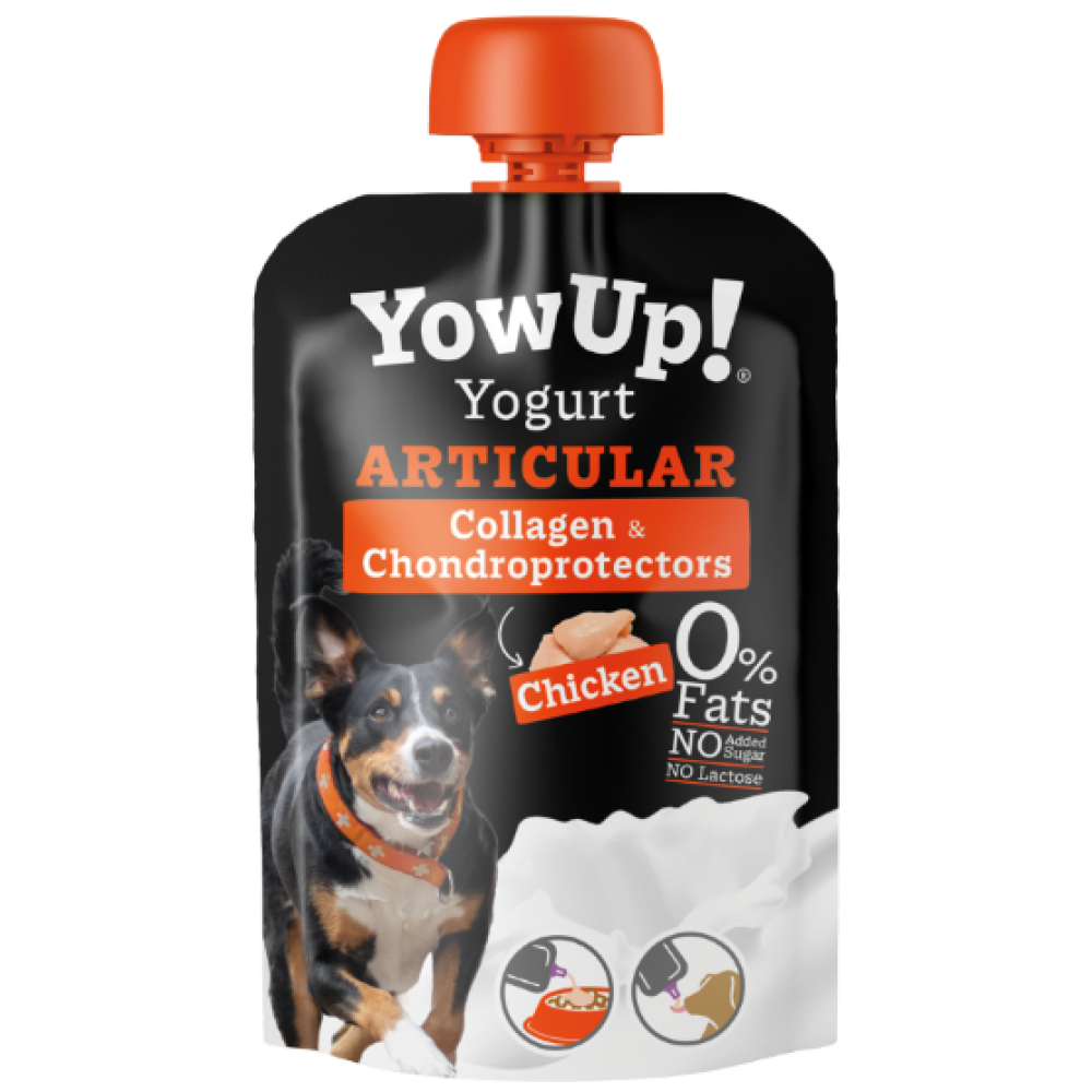 YowUp! bevat chondroprotectoren zoals collageen die bijdragen aan het behoud van gezond kraakbeen, soepele gewrichten en voor het behoud van sterke botten. Daarnaast levert het de nodige voedingsstoffen op voor je viervoeter, wat samen met de kip, een voedingssupplement is waar je hond dol op zal zijn.